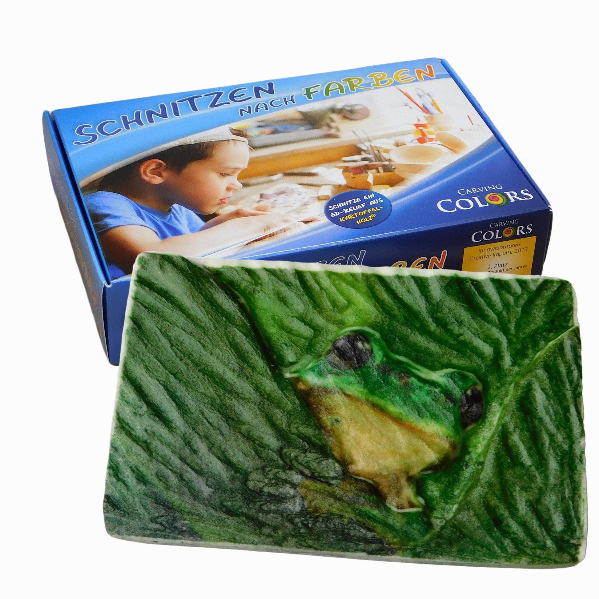 Schnitzen nach Farben - Schnitzbild Frosch (ohne Werkzeug)