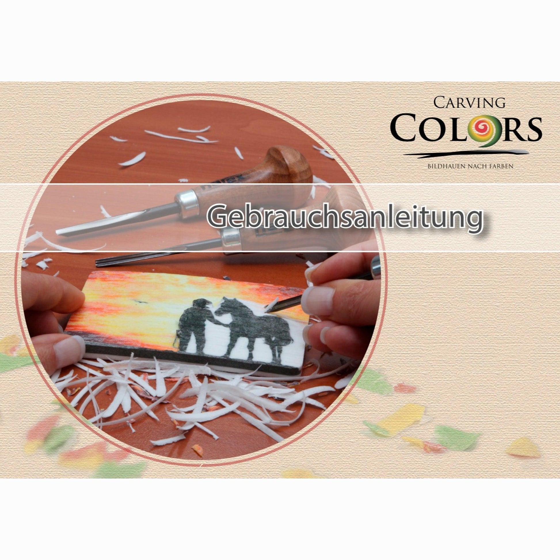 - 4 doppelseitige, stark haftende Klebepads zur Befestigung des Schnitzblocks auf einer unempfindlichen Unterlage (z.B. Holzbrett)